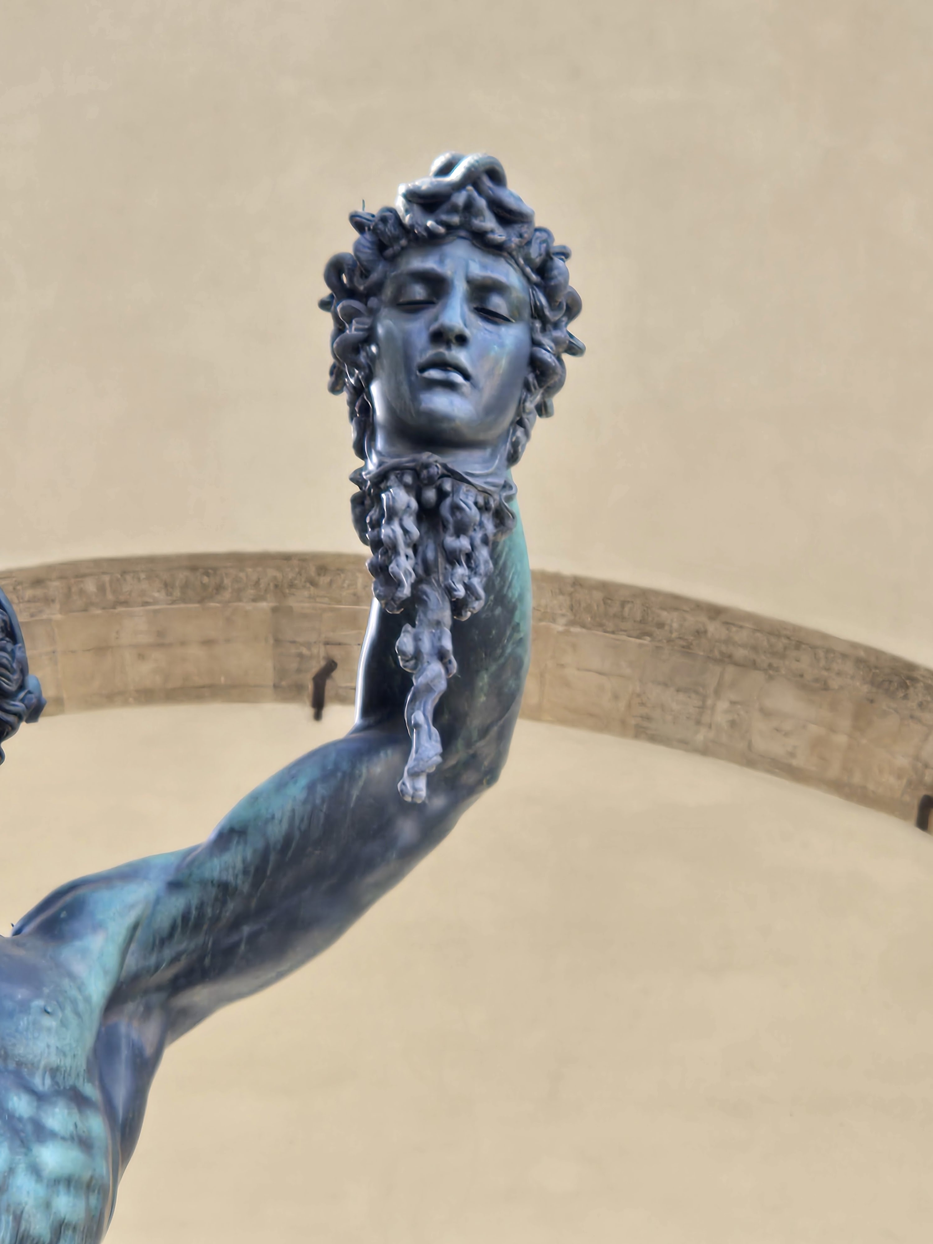 Many of the sculptures are displayed in the Loggia dei Lanzi, an arcade on the south side of the piazza.